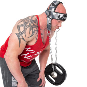- Kopf und Nackentrainer mit Kopfpolsterung Zur Kräftigung der Nackenmuskulatur. Mit Chromkette zur Hantelscheibenaufnahme mit Karabinerhaken. Extra starke Kette zum Einhängen der Gewichte. Die Belastung kann individuell durch die verwendeten Gewichte (Hantelscheiben) eingestellt werden.